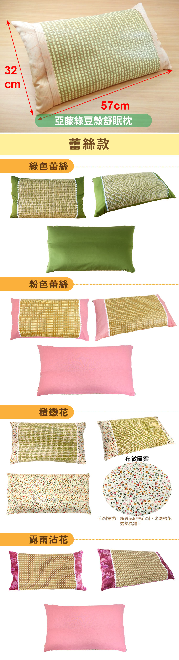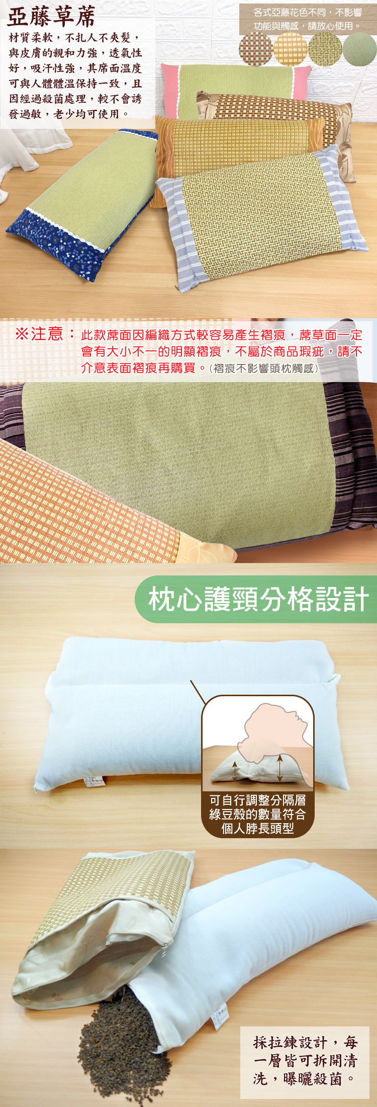 ⊙品 名:綠豆殼亞藤舒眠枕-花色任選