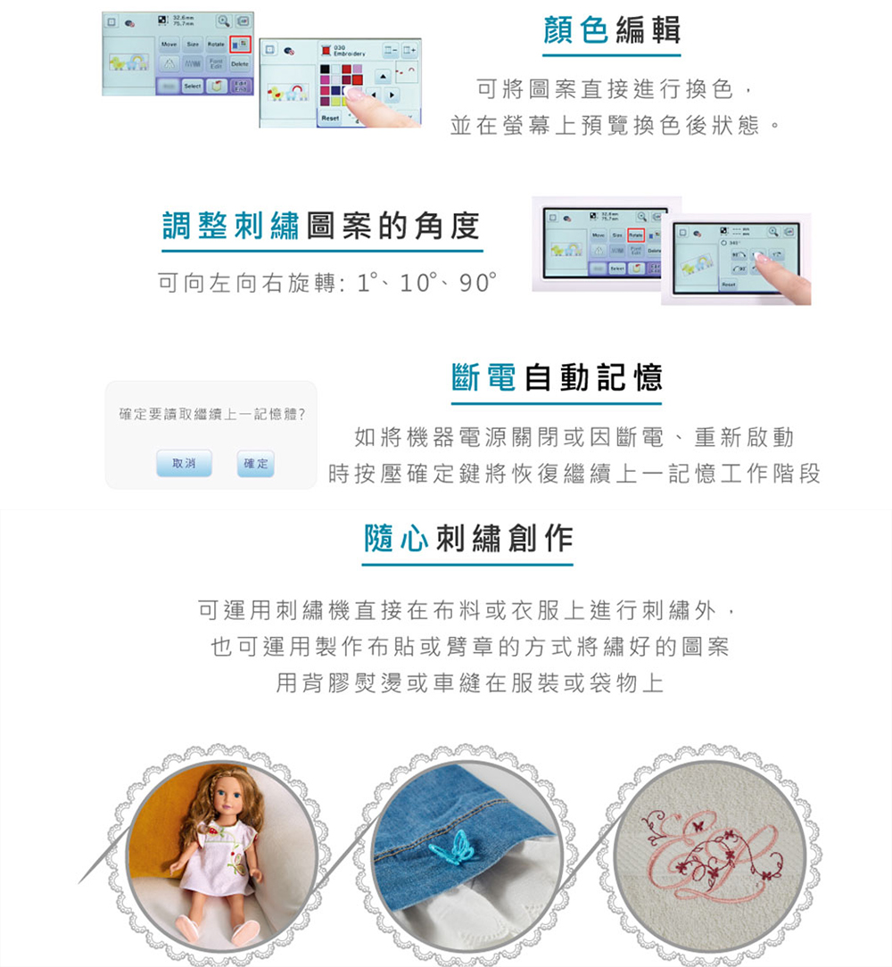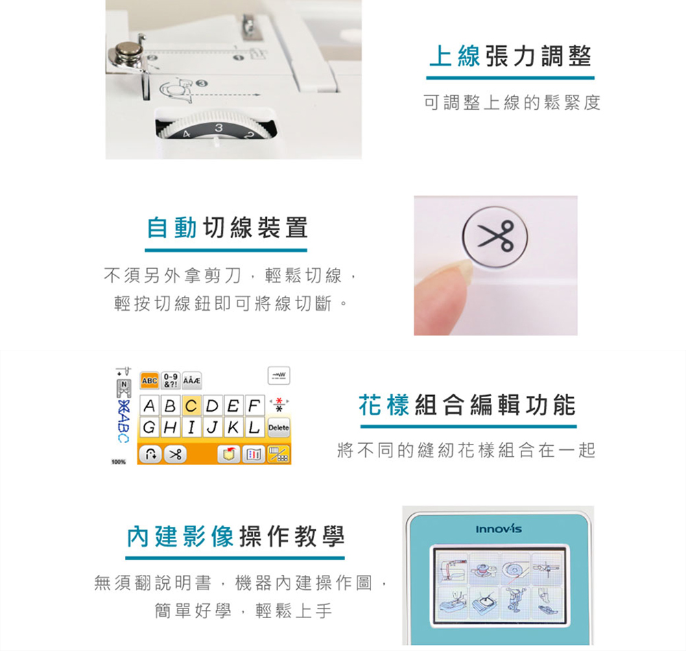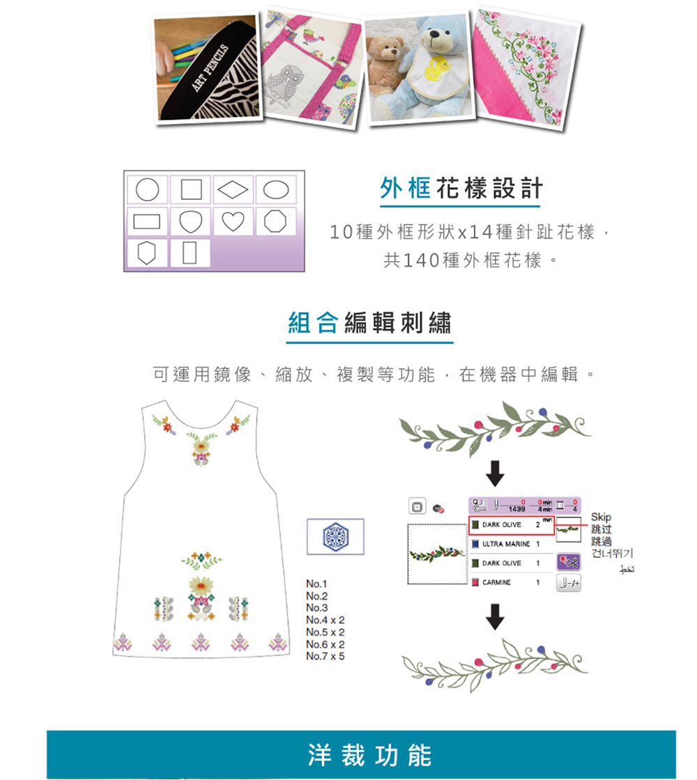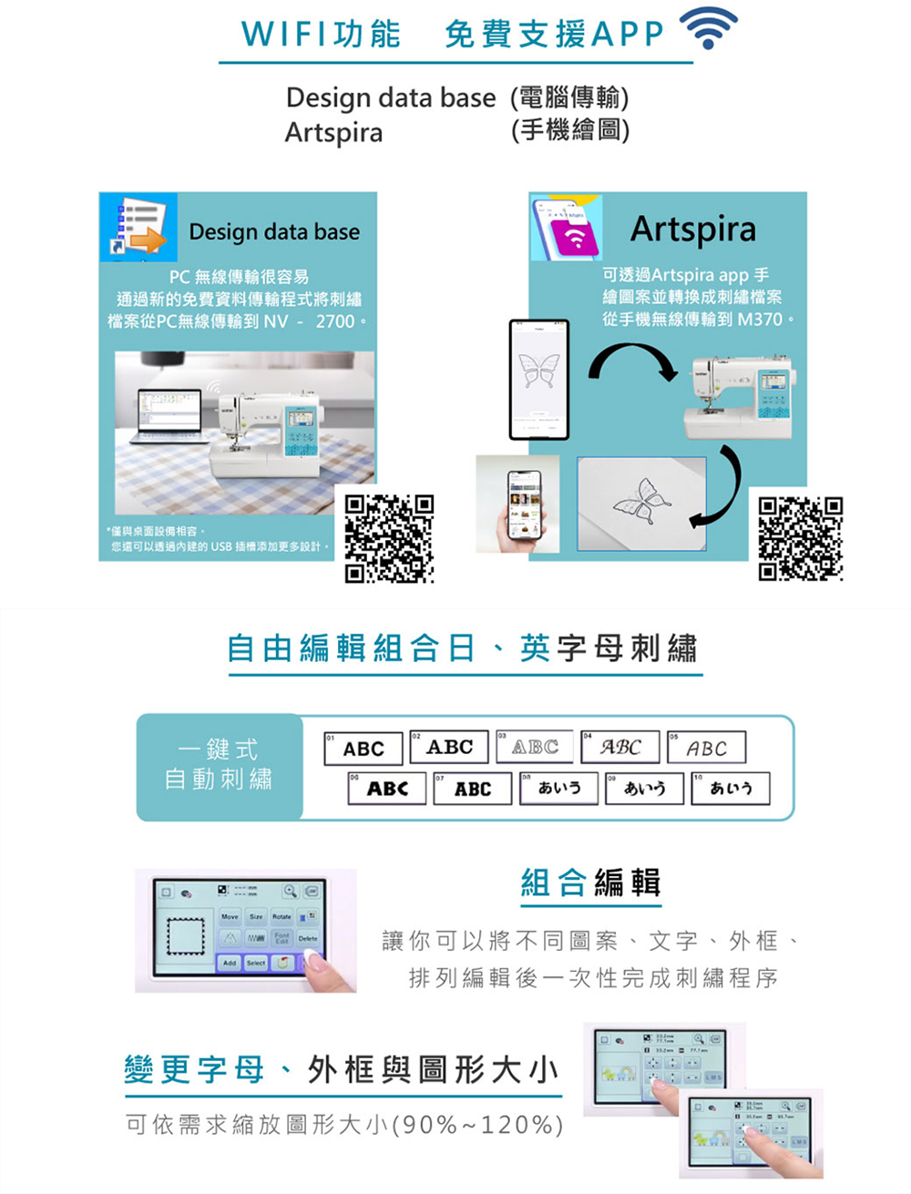 181種豐富的縫紉花樣 自由編輯組合英日字母刺繡 內建影像操作教學