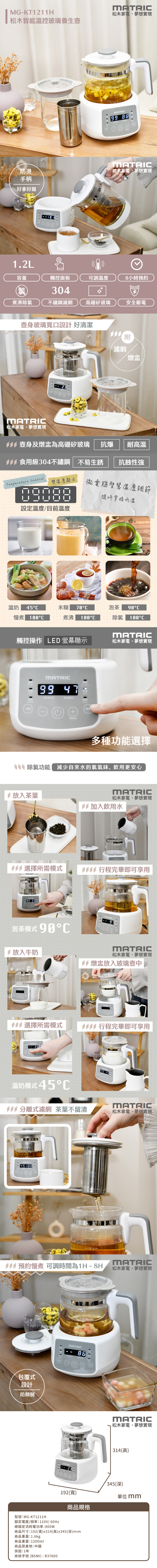 壺身為高硼矽玻璃,手柄/底座為PP材質