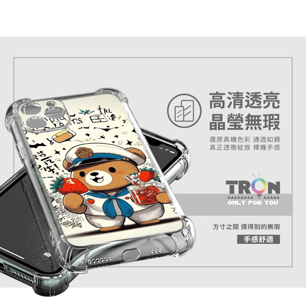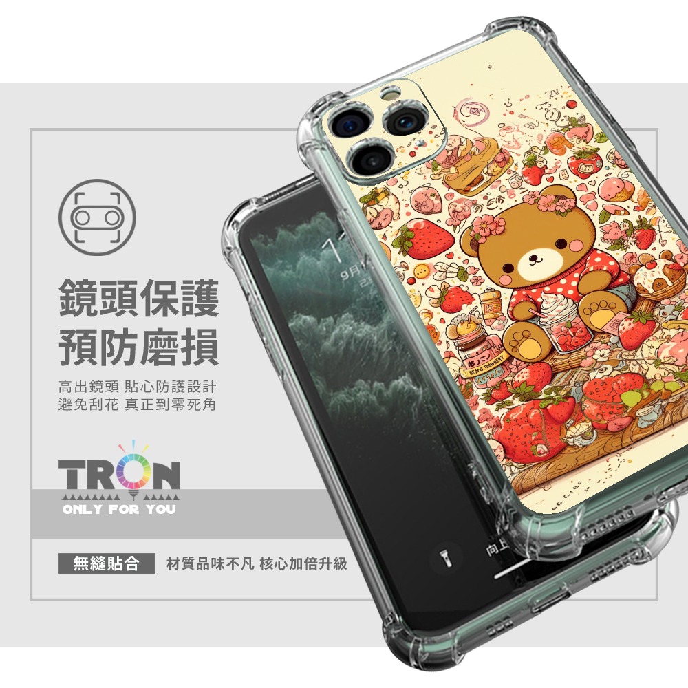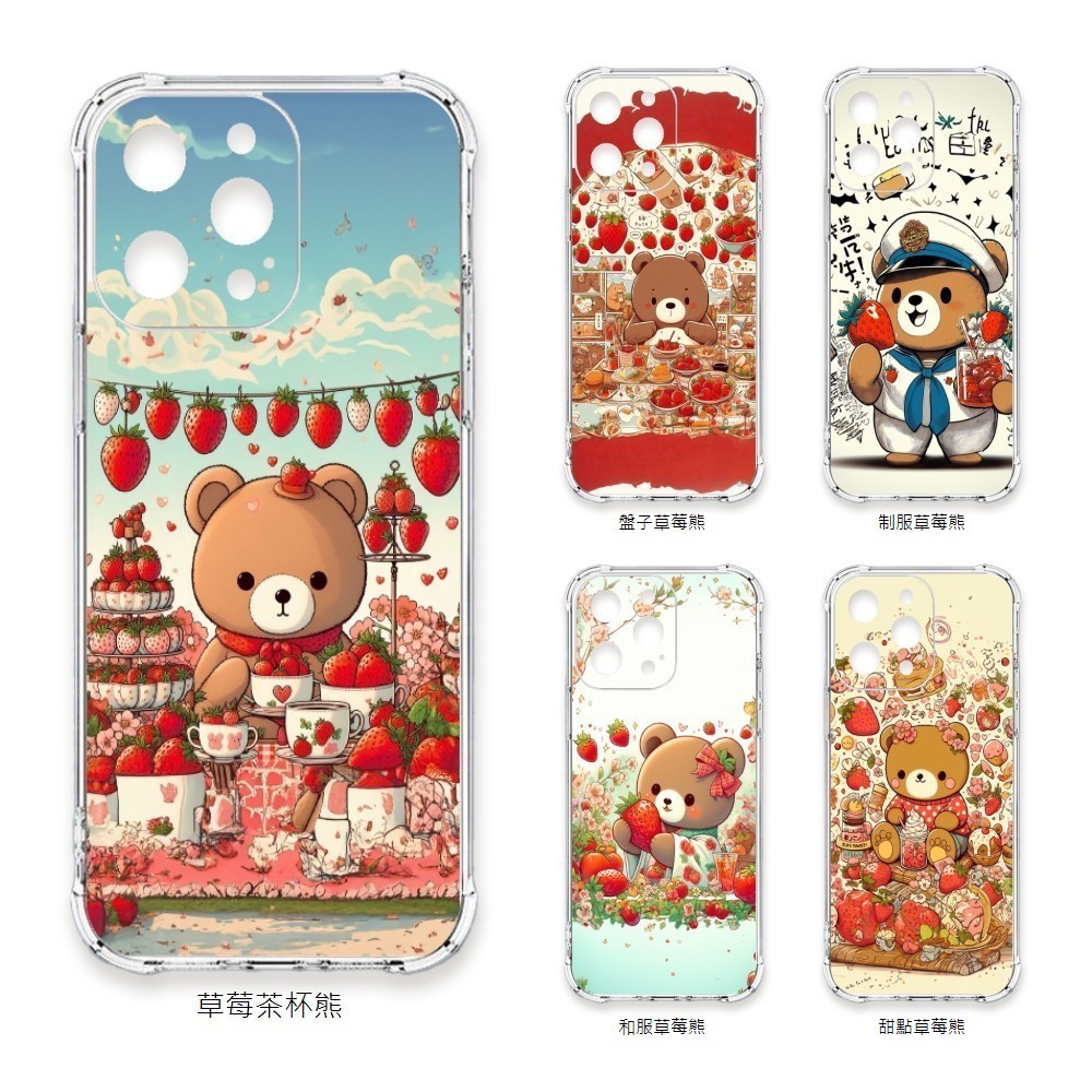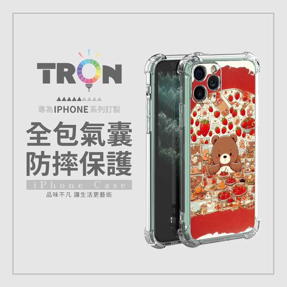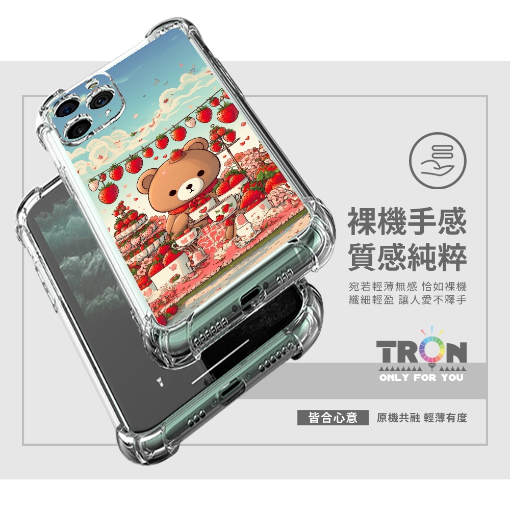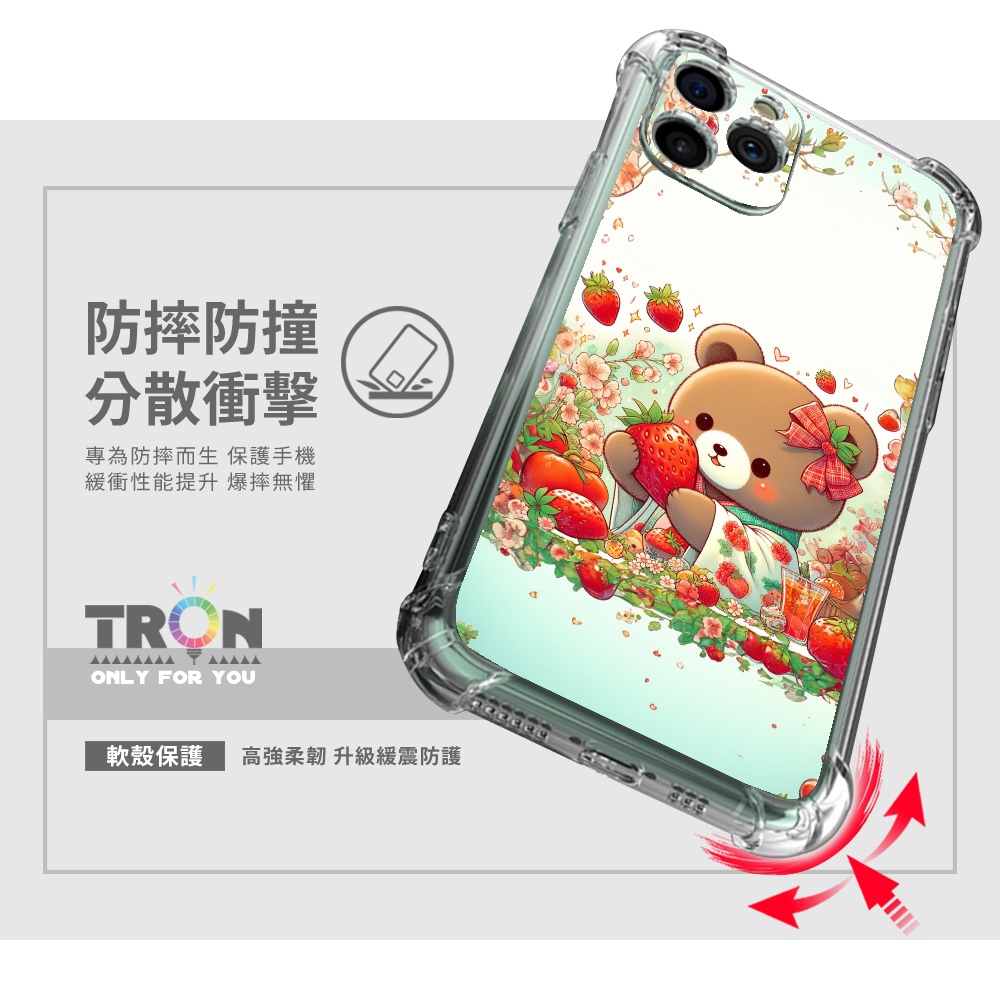TRON 創】iPhone 15/ Plus/ Pro/ Pro Max 可愛草莓熊系列 四角防摔 軟殼 手機殼(1入)