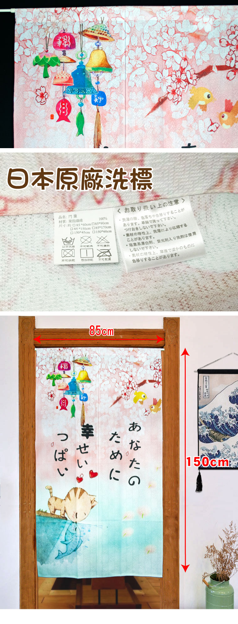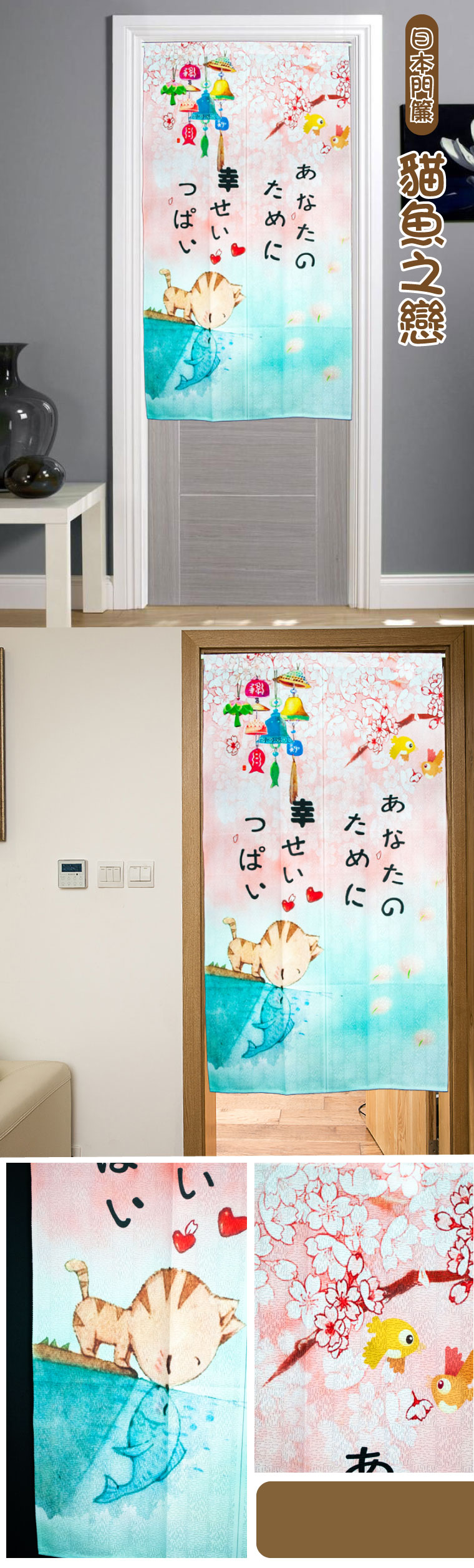 品名:日式門簾-貓魚之戀