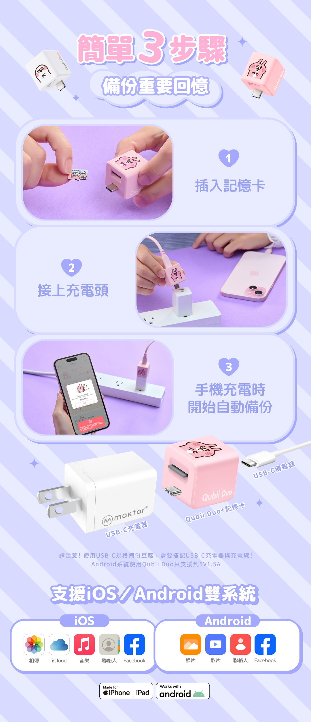 Maktar】Maktar Qubii Duo USB-C 備份豆腐 卡娜赫拉的小動物【 閃爍P助 】蘋果安卓通用(USB-C 卡娜赫拉專用APP)