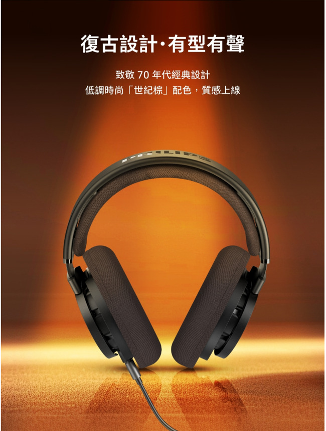 融合復古美學與現代聲學科技 搭載 50mm 鈷磁石驅動單體 搭配開放式後背設計 舒適的雙層式頭帶襯墊