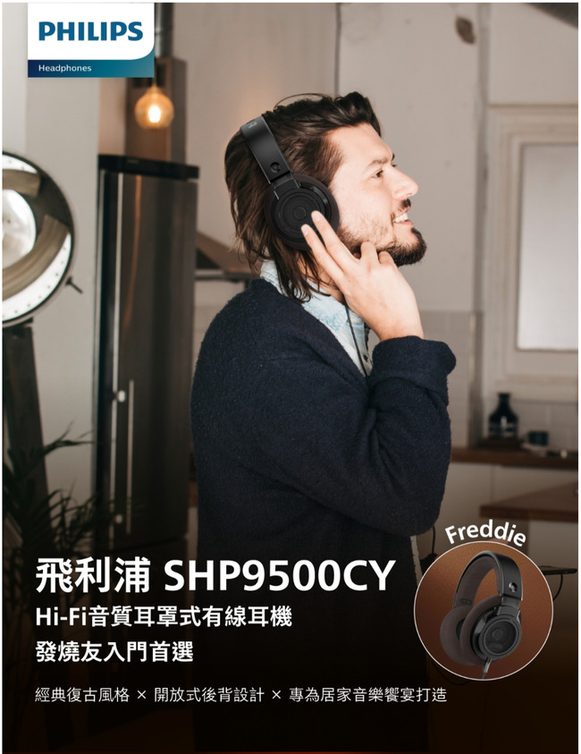 PHILIPS 飛利浦】Hi-Fi有線耳罩式耳機(SHP9500CY)