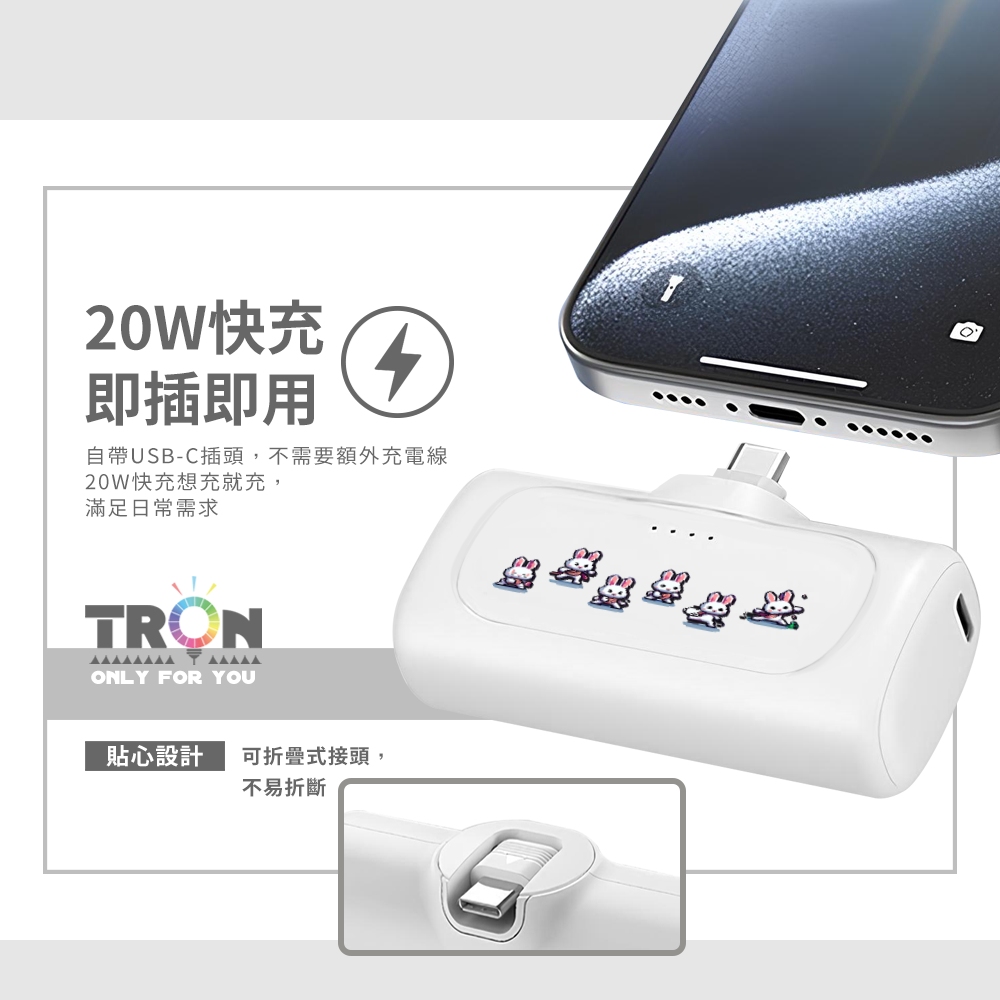TRON 創】TRON 20W直插式行動電源 兔兔復古遊戲 Type-C 口袋型 快充行動電源(1入)