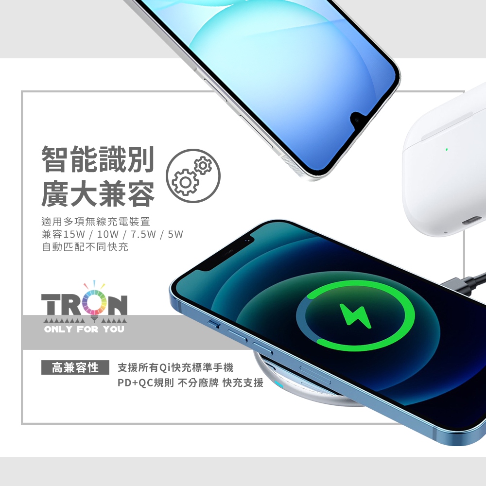 無線充電盤 即放即充 支援所有Qi快充標準手機 輕薄小巧 不占空間