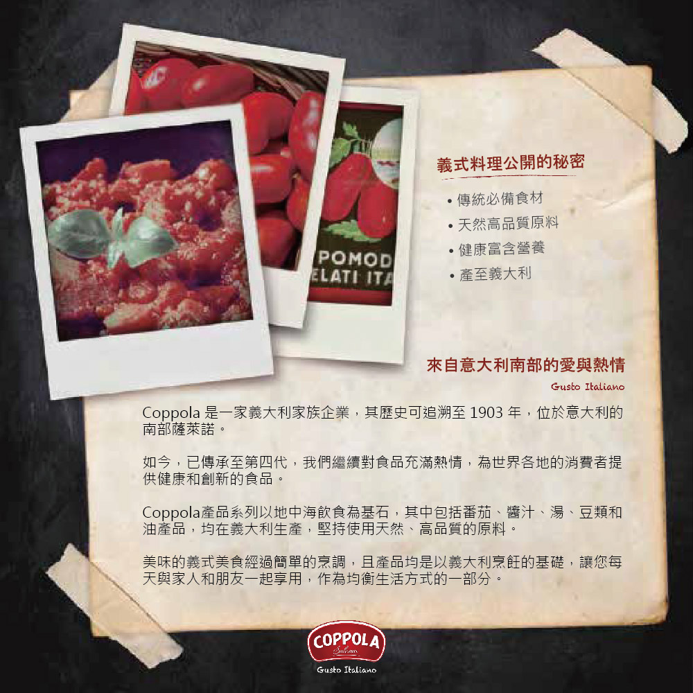1.商品組合/規格:1L 2.商品品名:Coppola 義大利100%葵花油 1L 3.商品重(容)量:1L 4.內容物成分(如含有豬、牛成分請加註國別):100%葵花籽油 5.食品添加物名稱:無 6.原產地(國):意大利 7.製造廠商或國內負責廠商名稱:廣紘國際股份有限公司 8.製造廠商或國內負責廠商地址:台北市內湖區瑞光路288號8樓 9.製造廠商或國內負責廠商電話:(02)7730-1000 10.有效日期:24個月 11.食品業者登錄字號:A-128072829-00000-6 12.投保產品責任險字號:富邦產險 0525字第25AML0007505號