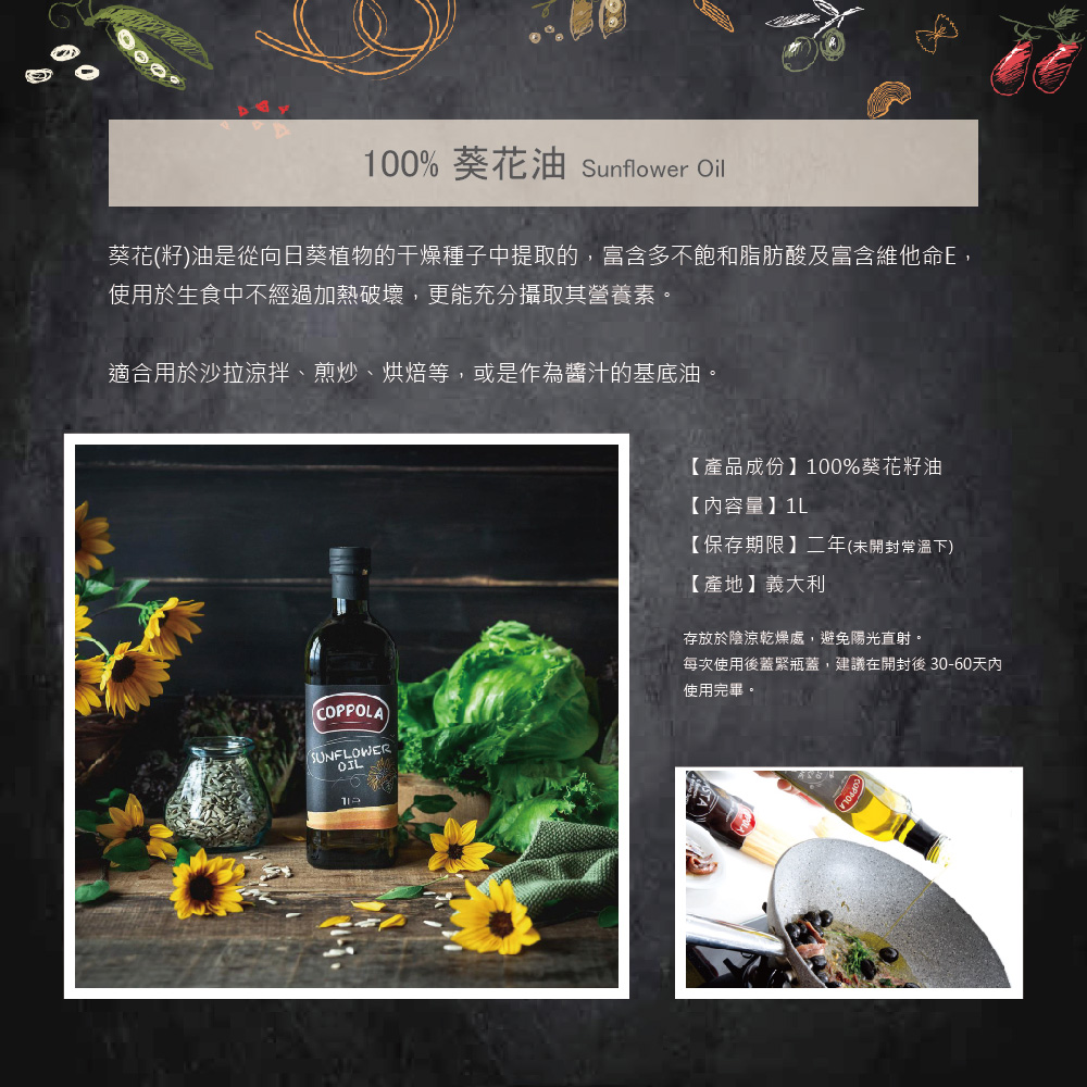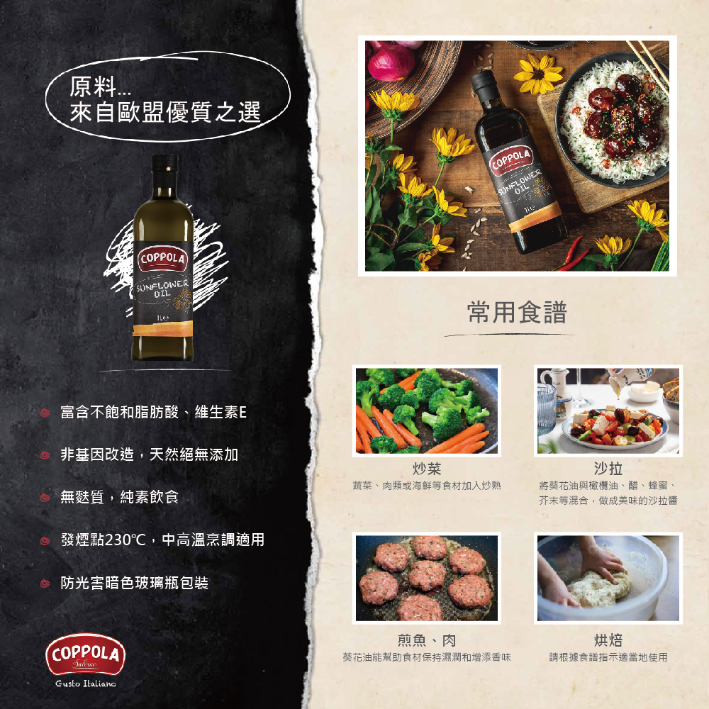 Coppola】義大利Coppola100%葵花籽油(1Lx1瓶)