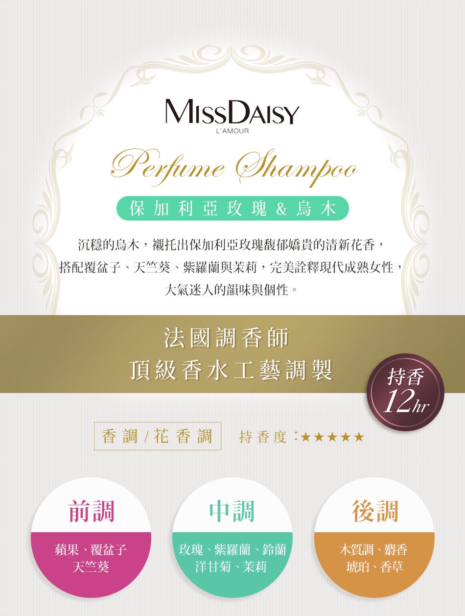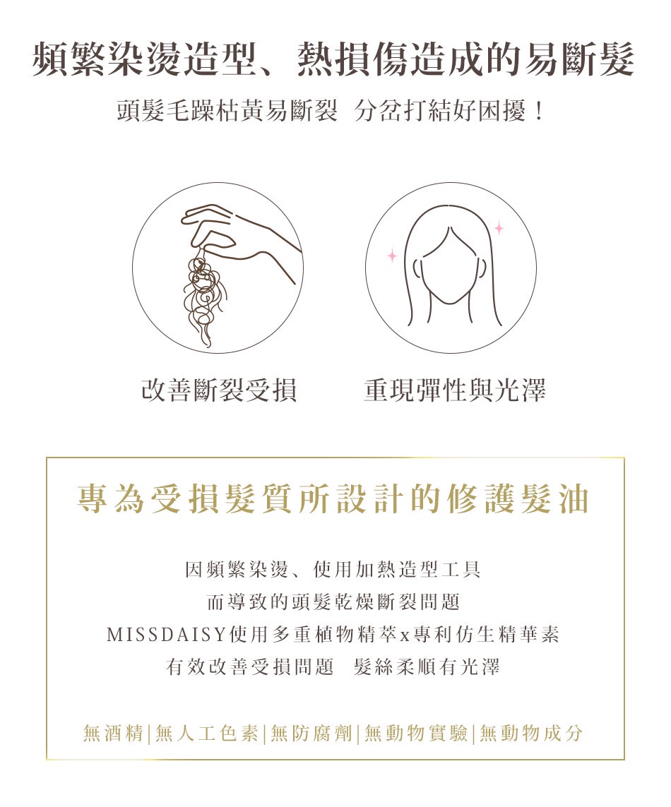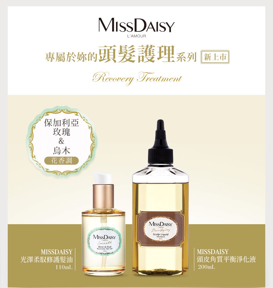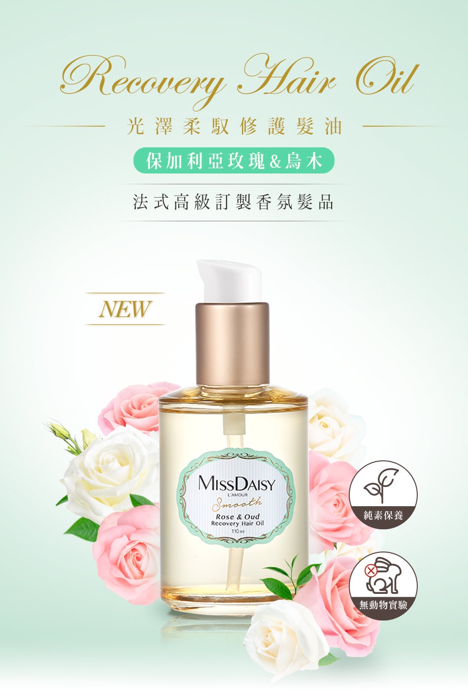◆ 商品名稱:MISSDAISY 光澤柔馭修護髮油(保加利亞玫瑰與烏木) 110mL