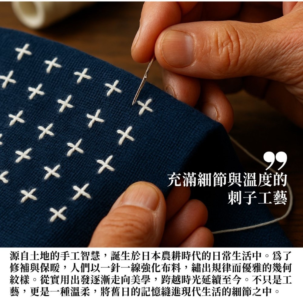 - 刺子繡的重複圖案,展現出工藝的韻律美感