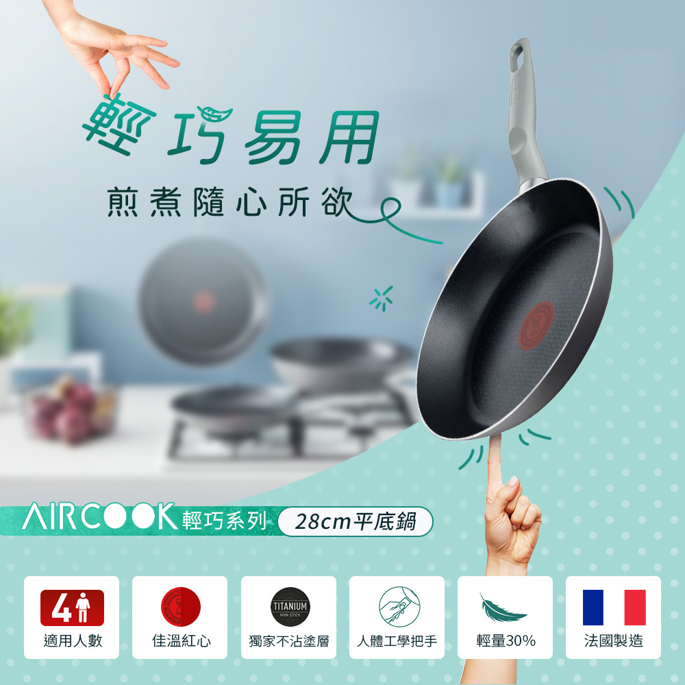 Tefal 特福】全新鈦升級-輕巧系列28CM-法國製(平底鍋+炒鍋)(超值雙鍋組)