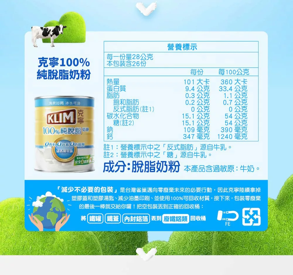 品名 / 克寧 100%純脫脂奶粉