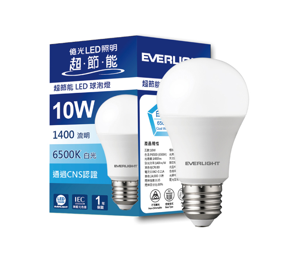 Everlight 億光】超節能LED球泡燈組10W白光(4入)