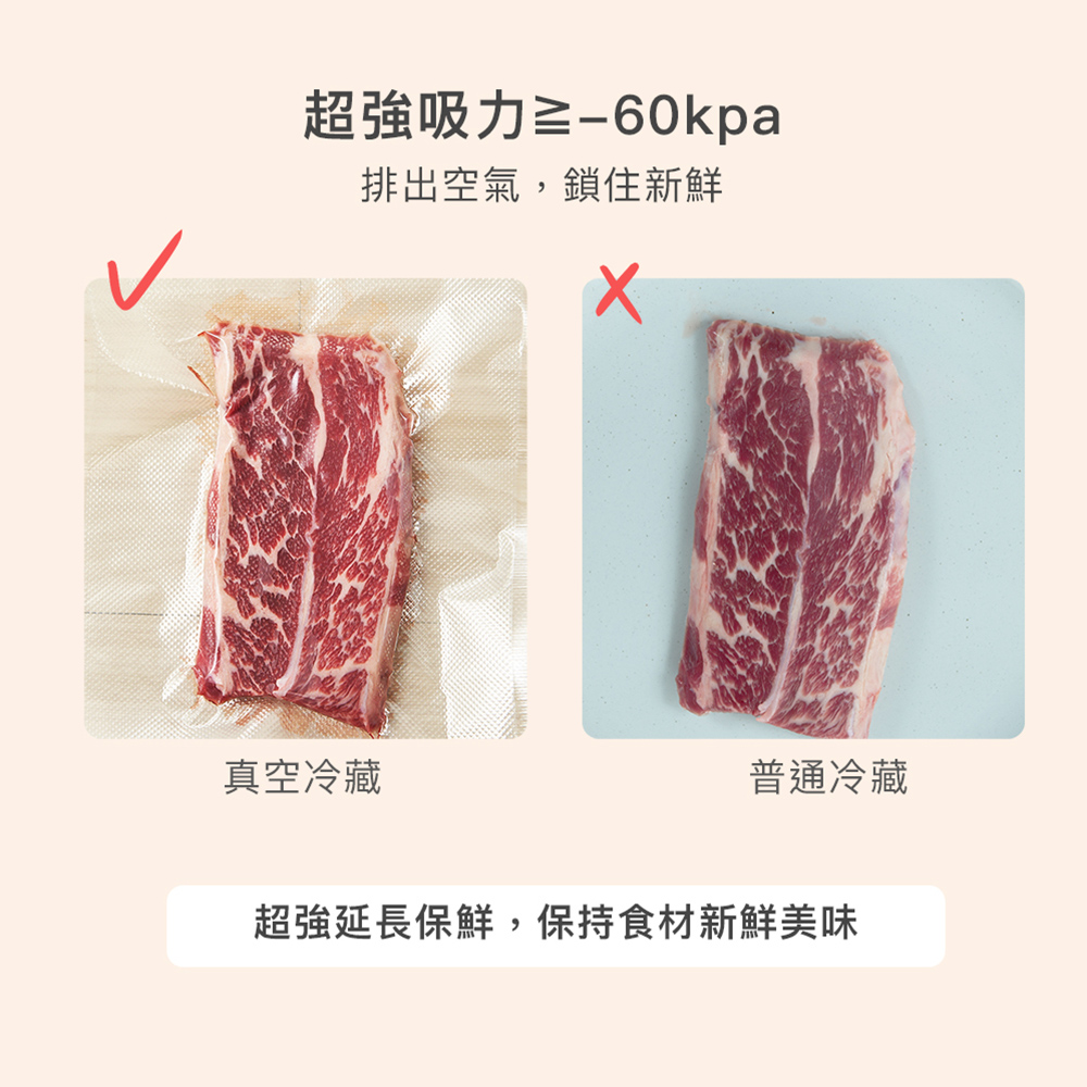 4. 超強吸力≧-60kpa,排出空氣,鎖住新鮮。