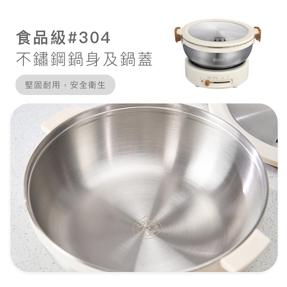 5. 食品級 304# 不鏽鋼鍋身及鍋蓋,堅固耐用,安全衛生。