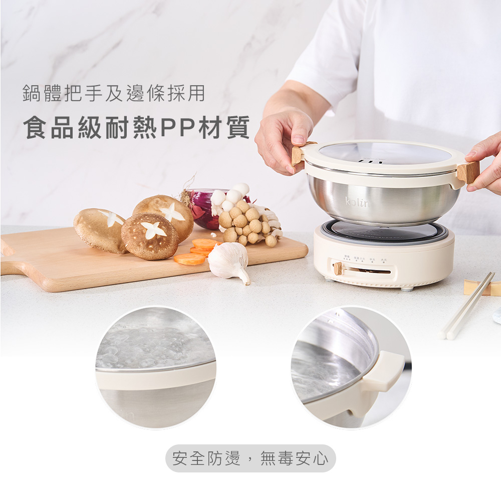 10. 鍋體把手及邊條採用食品級耐熱PP 材質,安全防燙,無毒安心。