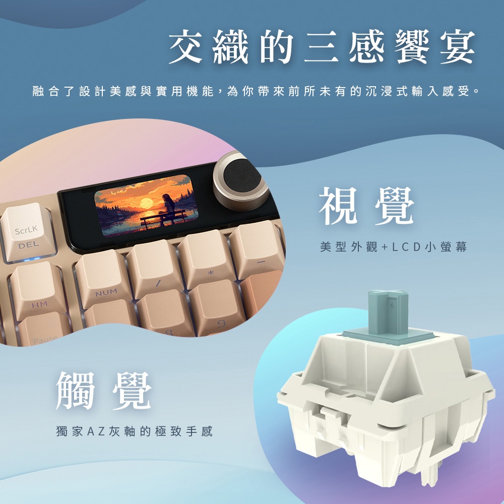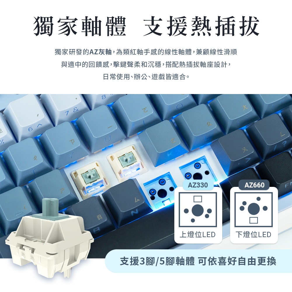 .採用獨家的AZ灰軸軸體,為類紅軸的線性手感,支援軸體熱插拔。
