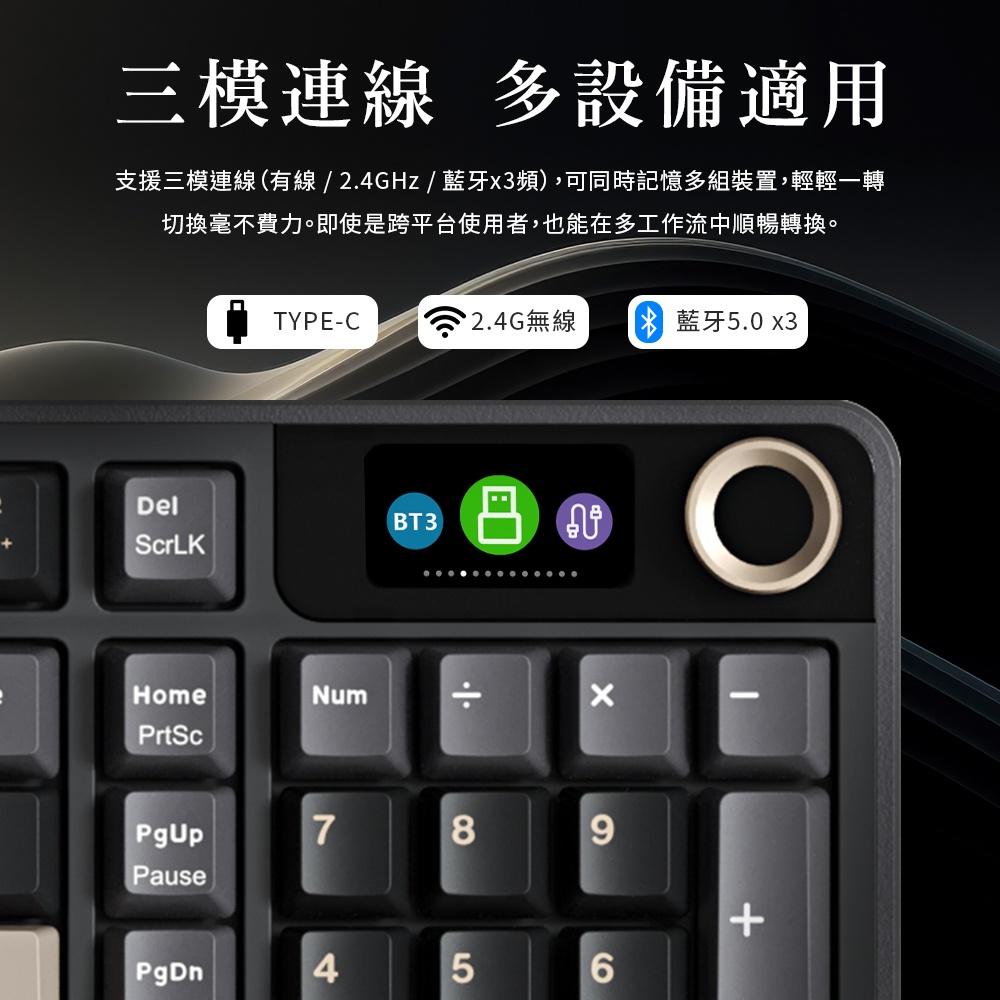 .三種連線模式(有線/2.4G/藍牙x3頻),可完全適應各類設備。