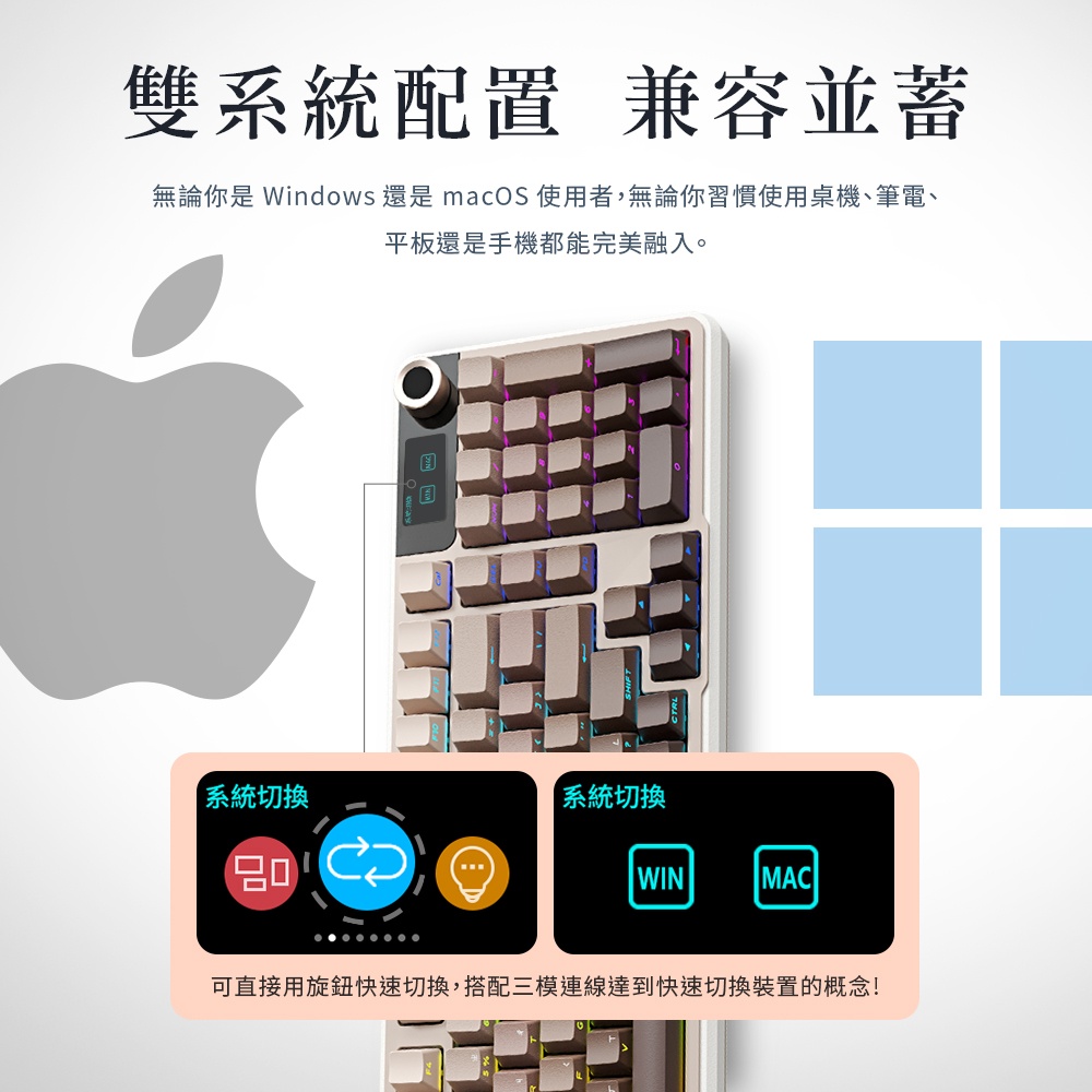 .雙系統鍵盤配置,WINDOWS / MAC OS皆可適應。