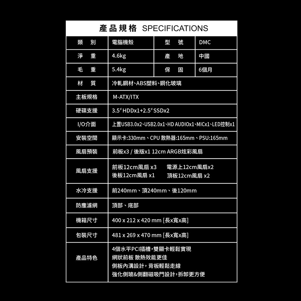 可裝風扇數:前3/後1/頂2/電源遮罩2