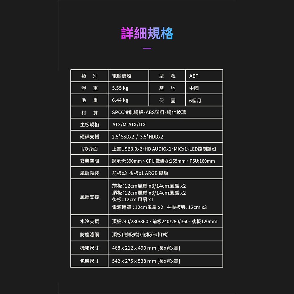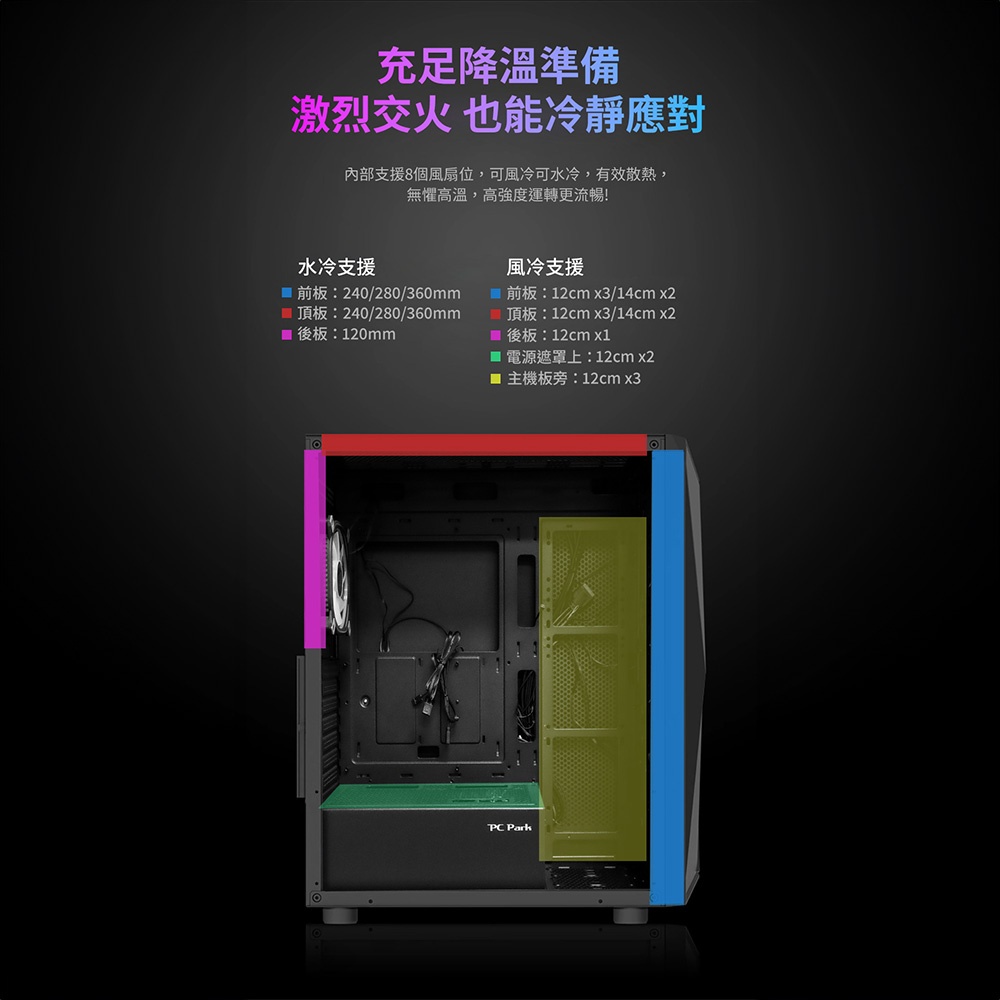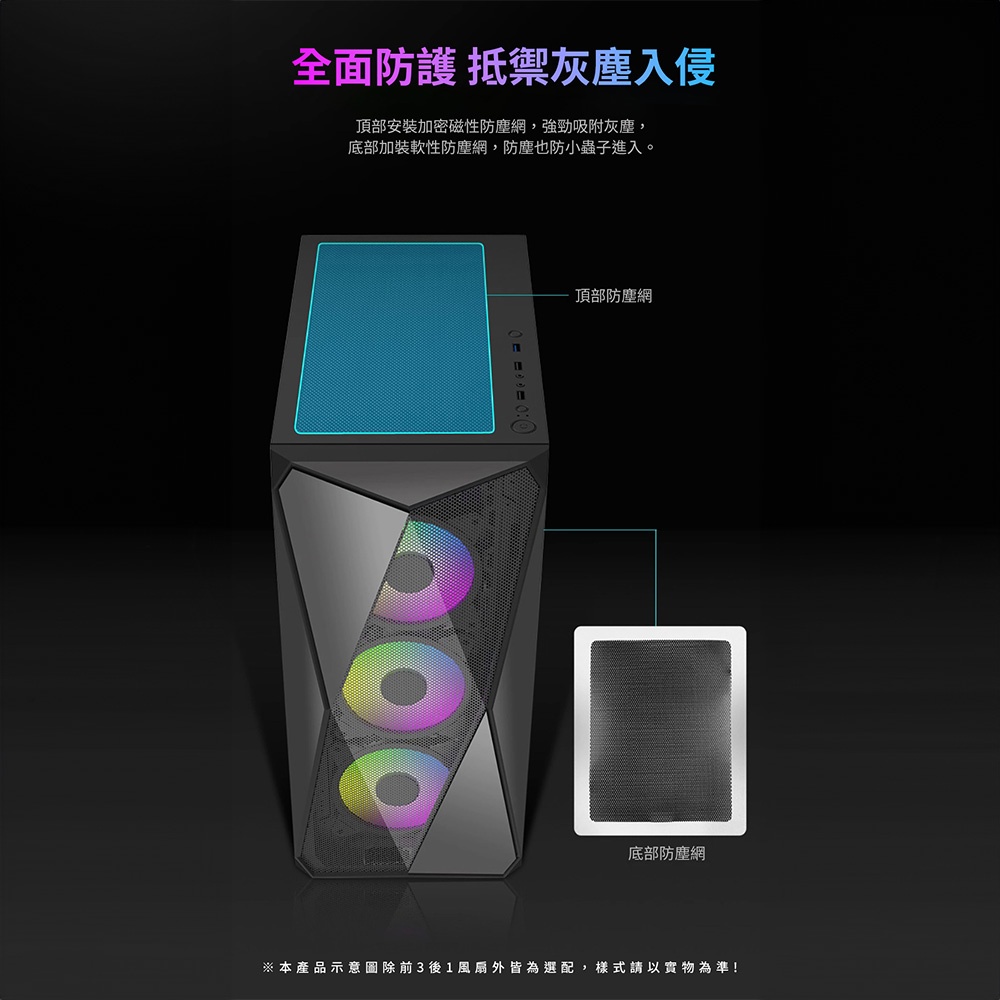 可裝風扇數:前X3頂X3後X1電源遮罩X2