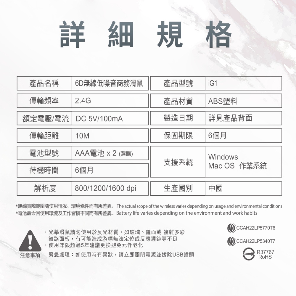 5.6D按鍵-提供含滾輪/DPI調整共6個可用按鍵。