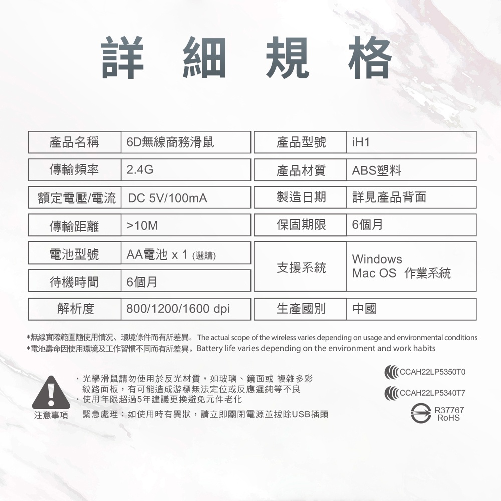 5.6D按鍵-提供含滾輪/DPI調整共6個可用按鍵。