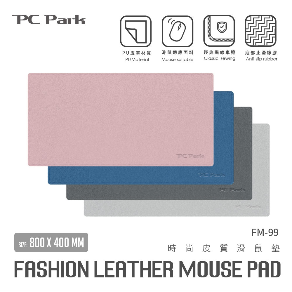 PC Park】FM-99 XL時尚皮質滑鼠墊/粉藍(800x400x3mm 防潑水 天然止滑像膠)