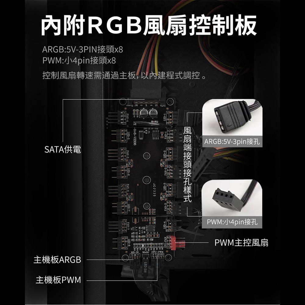‧內附3個12cm ARGB炫彩稜鏡風扇 可由LED按鍵調整燈效模式