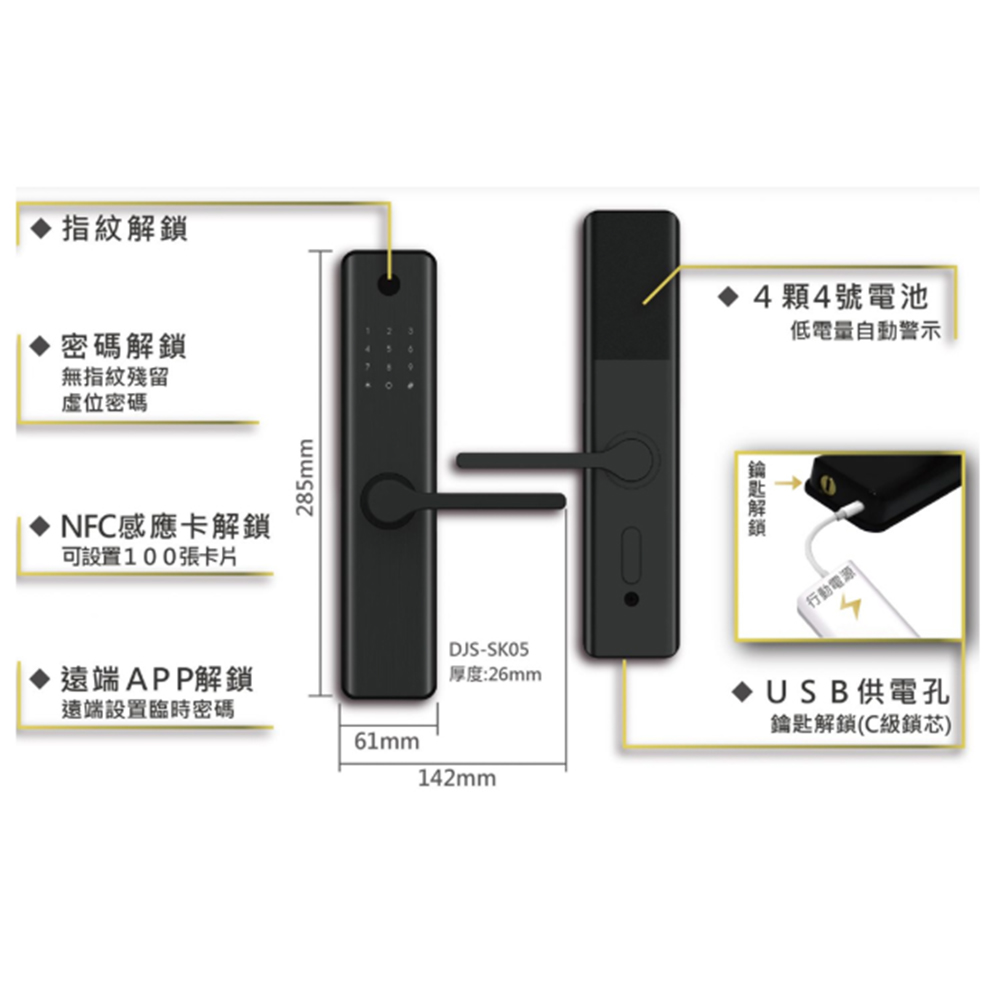昌運監視器】DJS-SK05 指紋密碼感應智慧電子鎖 飯店鎖 電子門鎖 密碼鎖 (指紋密碼鑰匙 藍牙 感應開鎖)