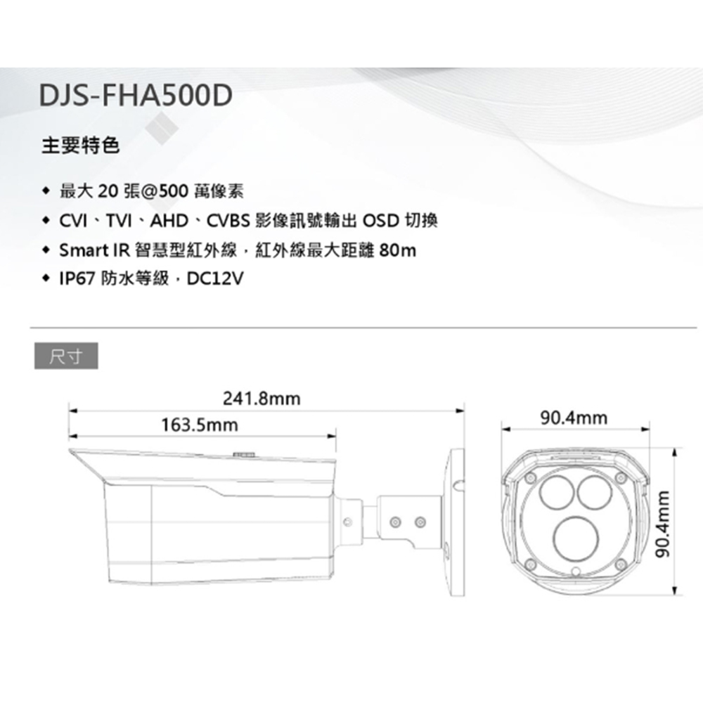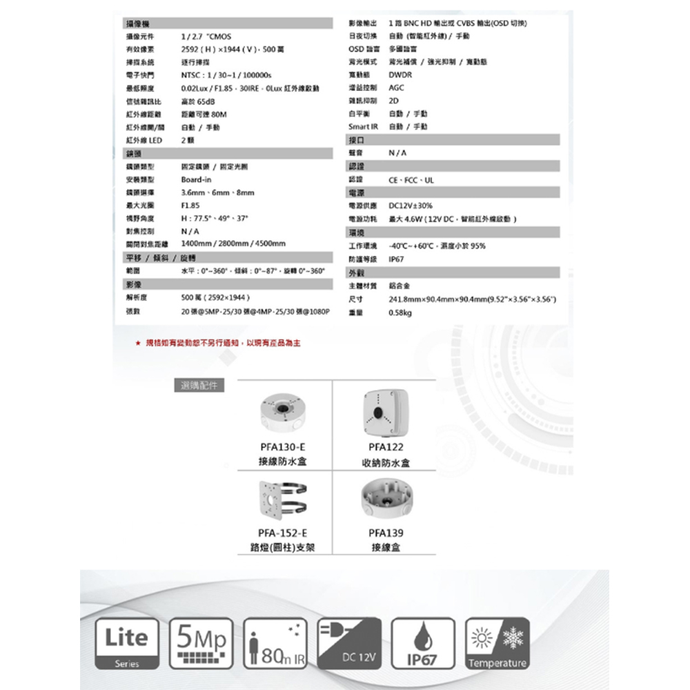 -紅外線最大距離 80 米,智慧型紅外線