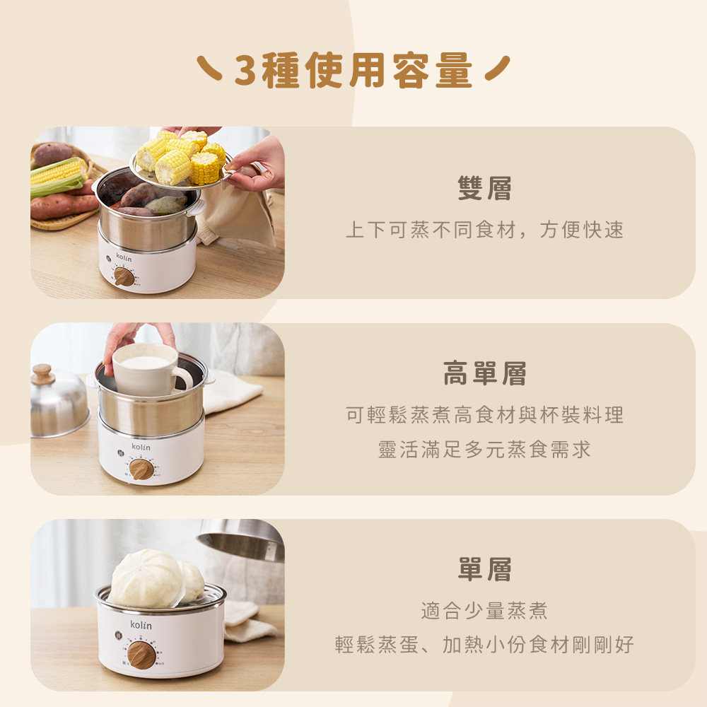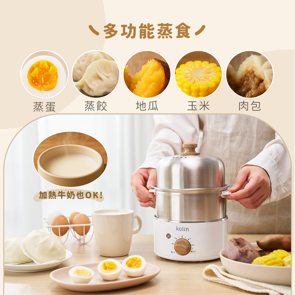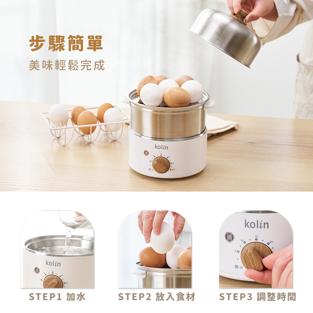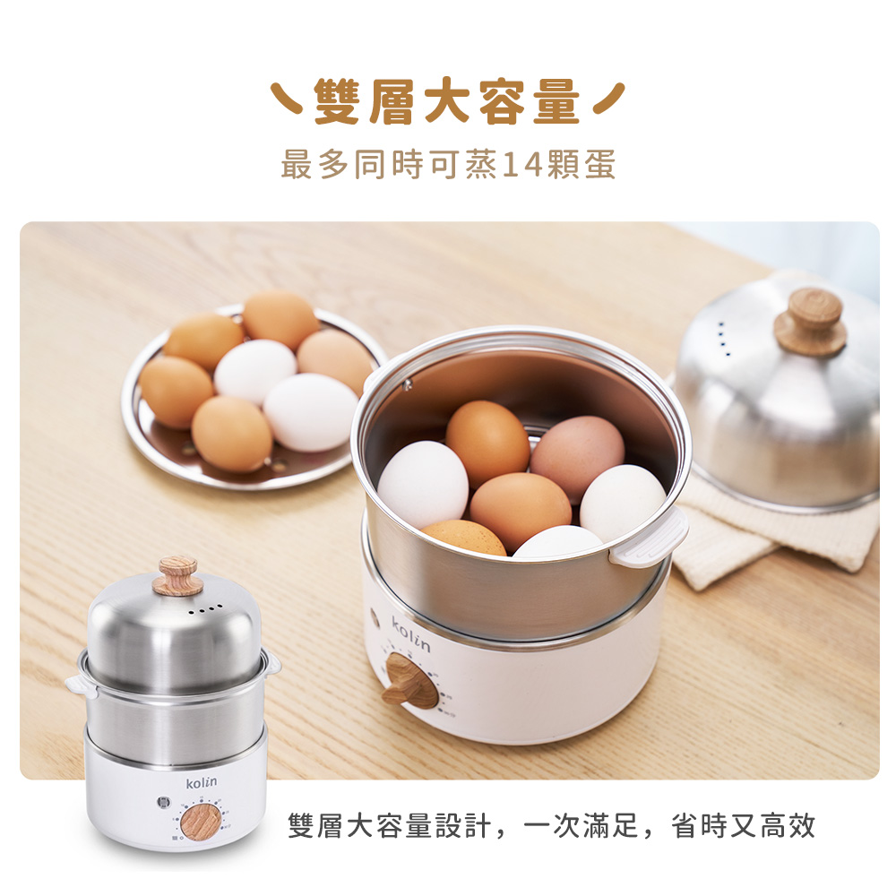 2. 雙層大容量,最多同時可蒸14顆蛋。