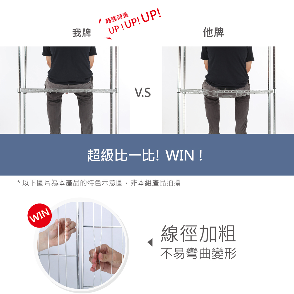 經濟抗漲價格,一鍵下單免運送到家! 最齊全的規格尺寸和配件~讓您創造大容量空間! 專業MIT工廠直營專業各式收納層架,品質把關/售後服務/安心有保障! 使用中鋼同等級鋼材製造,獨家加粗鐵線及加密網片,耐重又耐用。 *廚房收納、小資族、租屋族、居家收納、衣物收納、當商品展示架,輕鬆收納超Easy~*