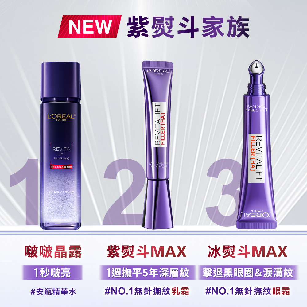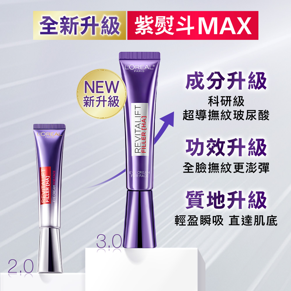 L'Oreal Paris 巴黎萊雅】紫熨斗撫紋升級保濕組(紫熨斗MAX3.0+保濕修護晶露)(22ml*2+30ml)