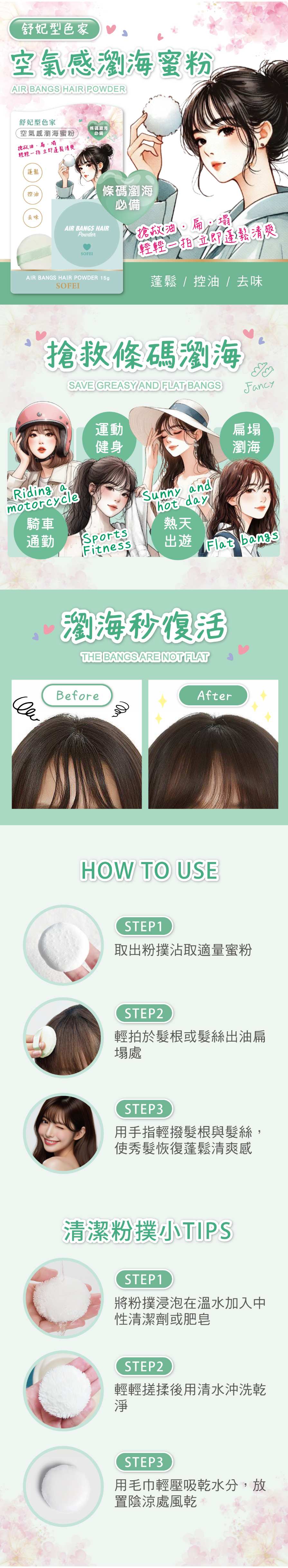 ★舒妃空氣感瀏海蜜粉,專為細膩髮質設計。