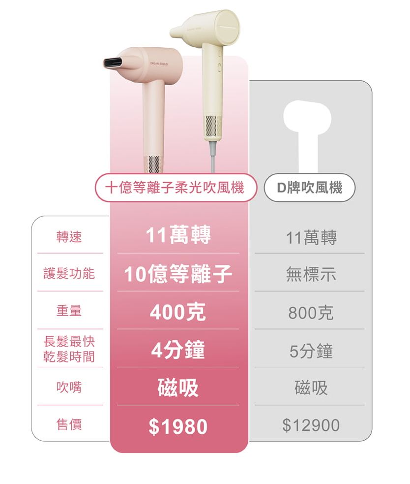 DREAM TREND 凱夢】十億等離子柔光吹風機 (DT-401)