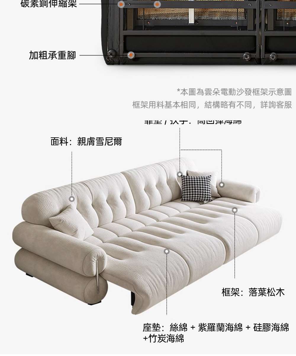 obis】黑糖雲朵智能電動沙發/沙發床240cm雙人位(雙電動款)(【obis】@117620)