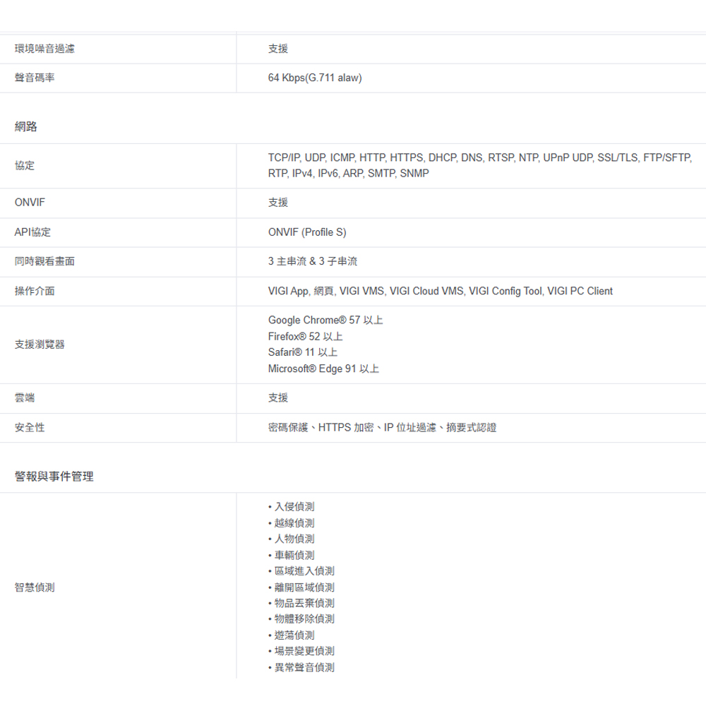 雙向語音:藉由語音對話功能的支援,在觀看任何地點的畫面時進行雙向對話。
