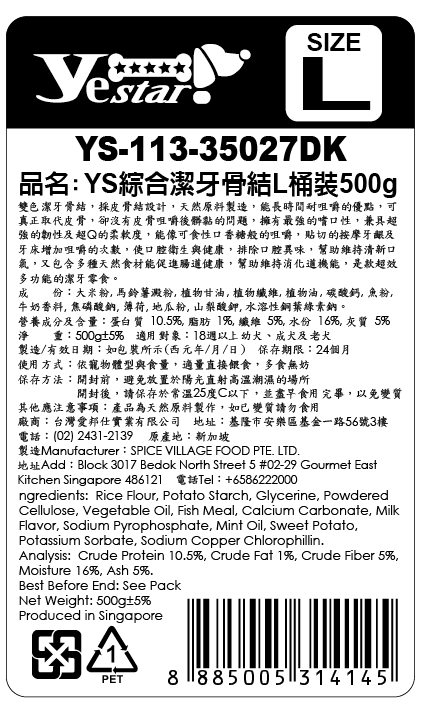 成分:大米粉、馬鈴薯澱粉、植物甘油、植物纖維、植物油、碳酸鈣、鮭魚粉、牛奶香料、焦磷酸鈉、薄荷、地瓜粉、山梨酸鉀、水溶性銅葉綠素鈉。