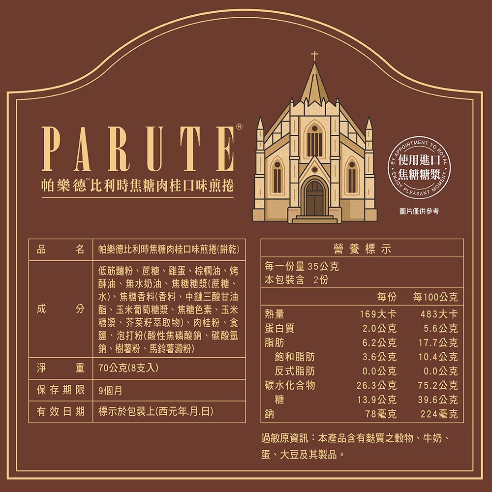品名 / 帕樂德比利時焦糖肉桂口味煎捲(餅乾) 70g(8支入)