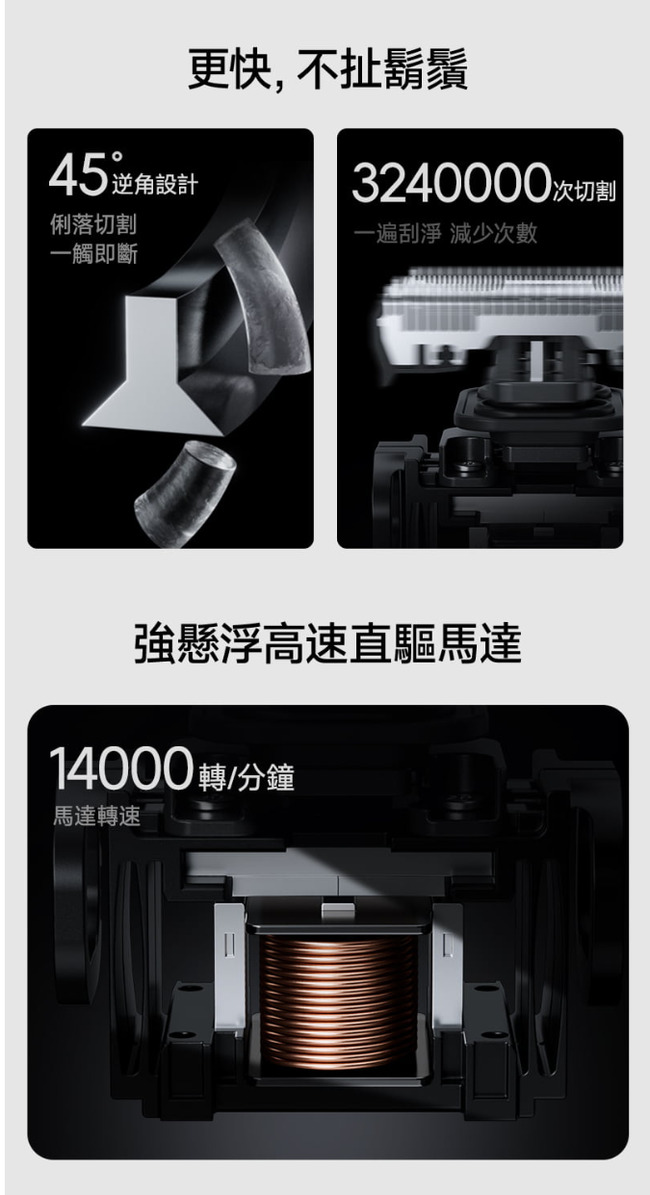 14000 轉/分鐘,磁懸浮高速直驅馬達。