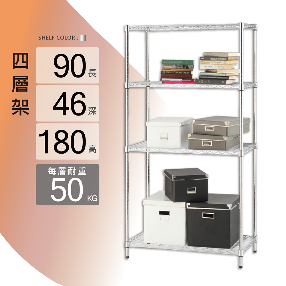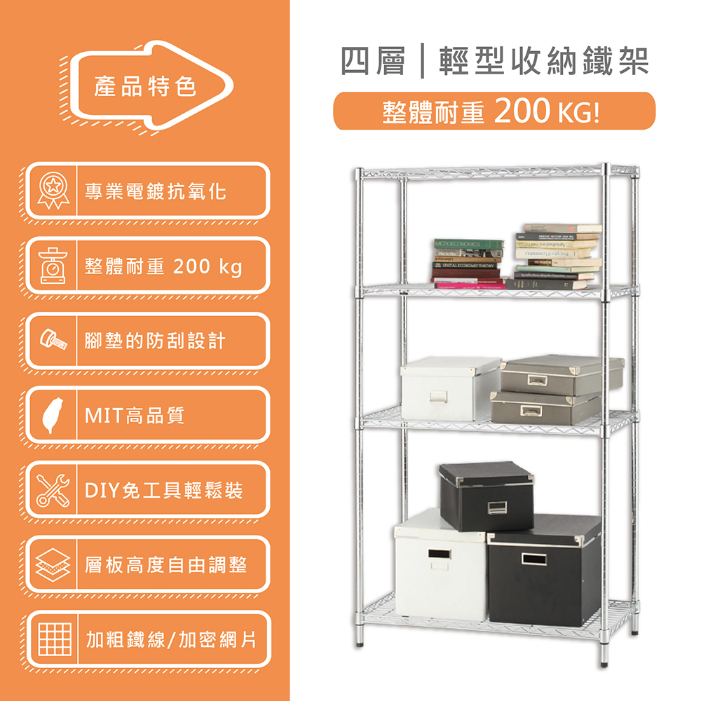 KIWISH 奇意】MIT台灣製90X46X180CM四層置物架 層架 耐用層架 置物架 收納架 鐵架 波浪架 鐵力士架(質感黑)