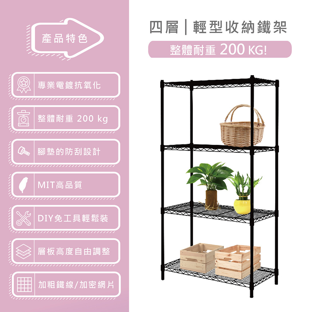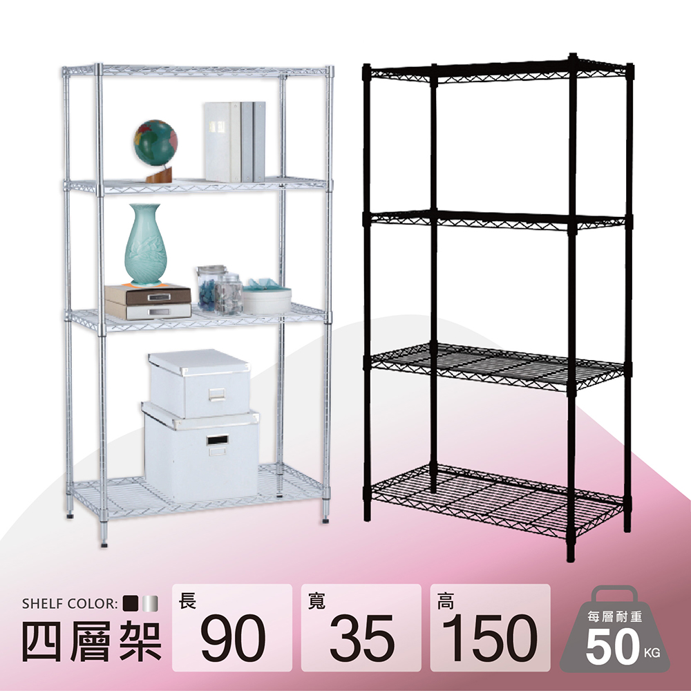 KIWISH 奇意】MIT廚房收納架 90X35X150CM 四層架 耐用層架 置物架 收納架 鐵架 波浪架 鐵力士架(質感黑/高級銀)