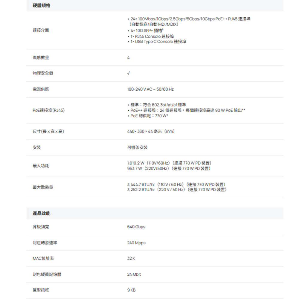 24× 1/2.5/5/10 Gbps RJ45 PoE++ 連接埠。