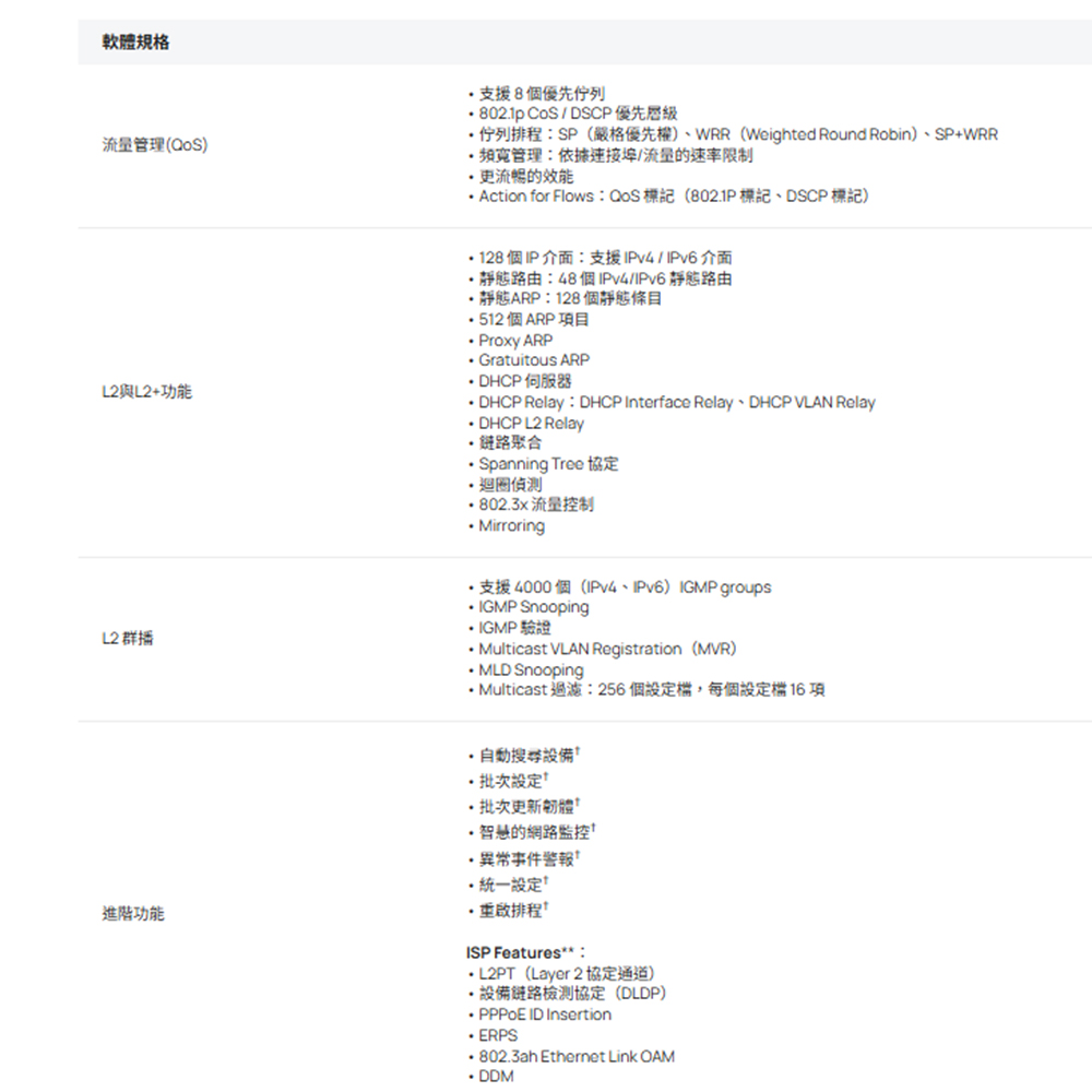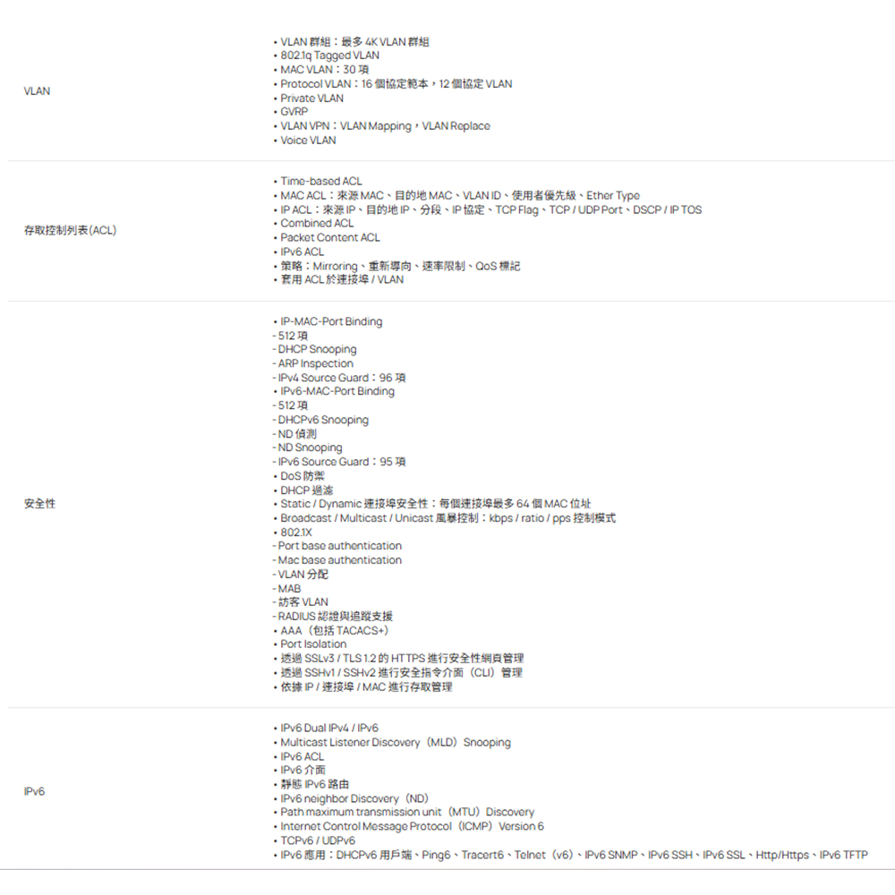 VLAN、ACL、QoS、IGMP Snooping、OAM 和 DDM。