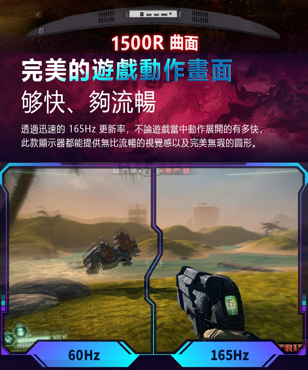 ★165Hz 更新率帶來流暢的遊戲體驗
