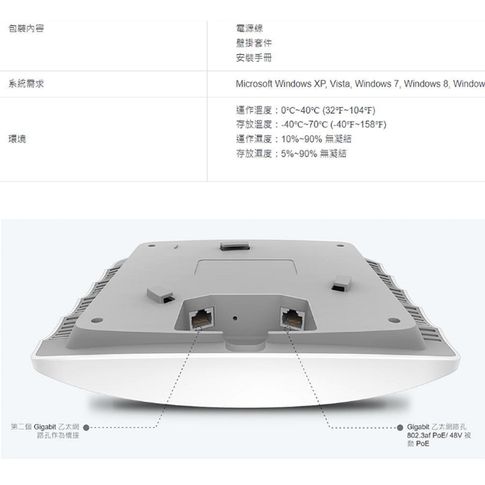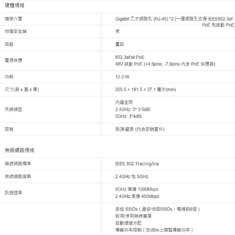 支援乙太網路供電(802.3at/802.3af) 安裝擺放更簡單、彈性。