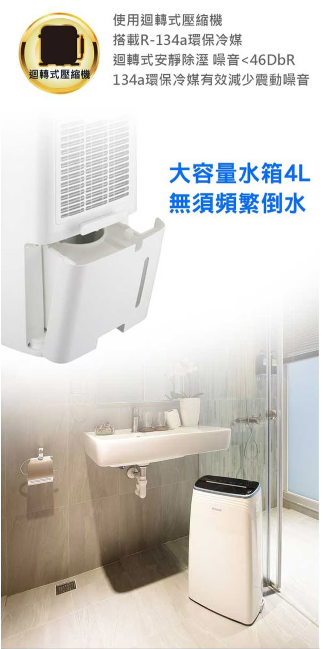 l 迴轉式安靜除溼,<46 dB