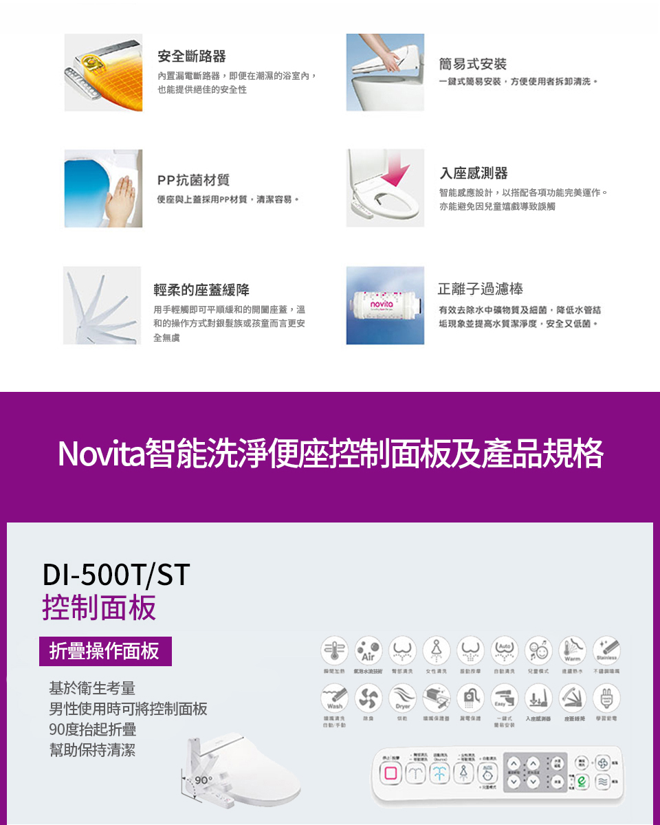 Novita 韓國】瞬熱式正離子濾水洗淨便座 DI-500ST 短版(智慧烘乾/強效除臭/ECO節電/免治馬桶)