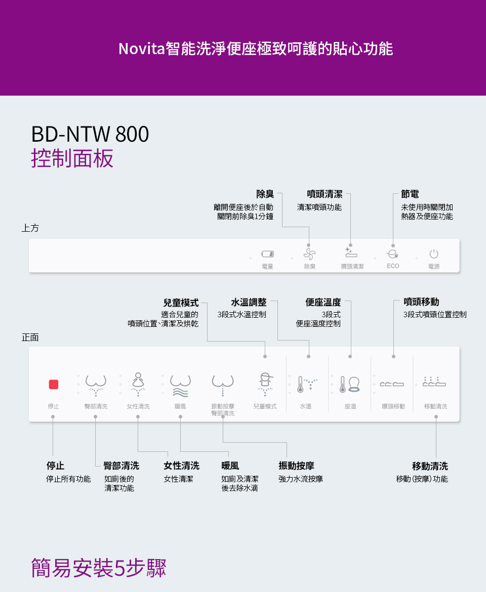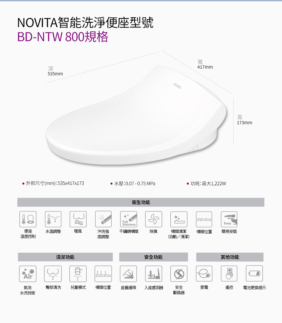 Novita 韓國】瞬熱式正離子濾水洗淨便座 BD-NTW800 長版(無線搖控/暖風烘乾/強效除臭/免治馬桶)